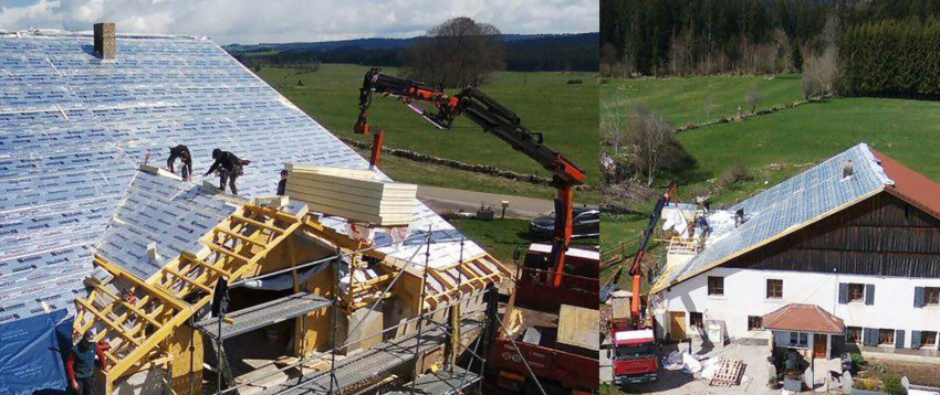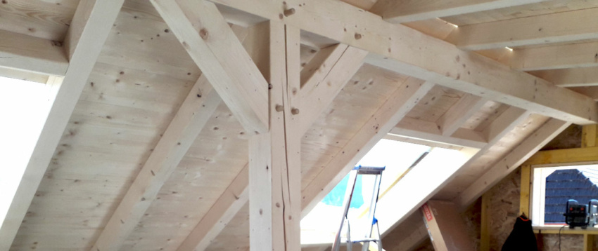 Pose de charpente traditionnelle, charpente en bois lamellé-collé, modification de charpente pour aménagement de combles, création de chiens assis dans le Haut-Doubs.