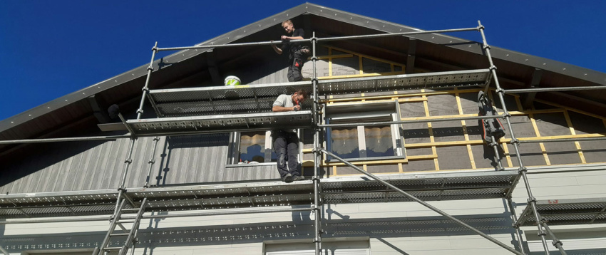 Travaux d’isolation extérieure de maison. Nous vous proposons un revêtement esthétique afin d’optimiser l’isolation de votre bâtiment : bardage en bois, bardage en zinc ou imitation bois.